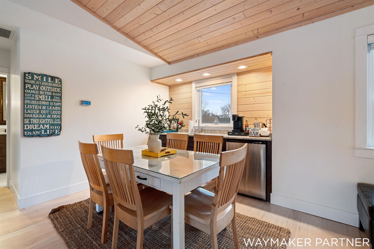 Sitting area with a second coffee station and mini-fridge