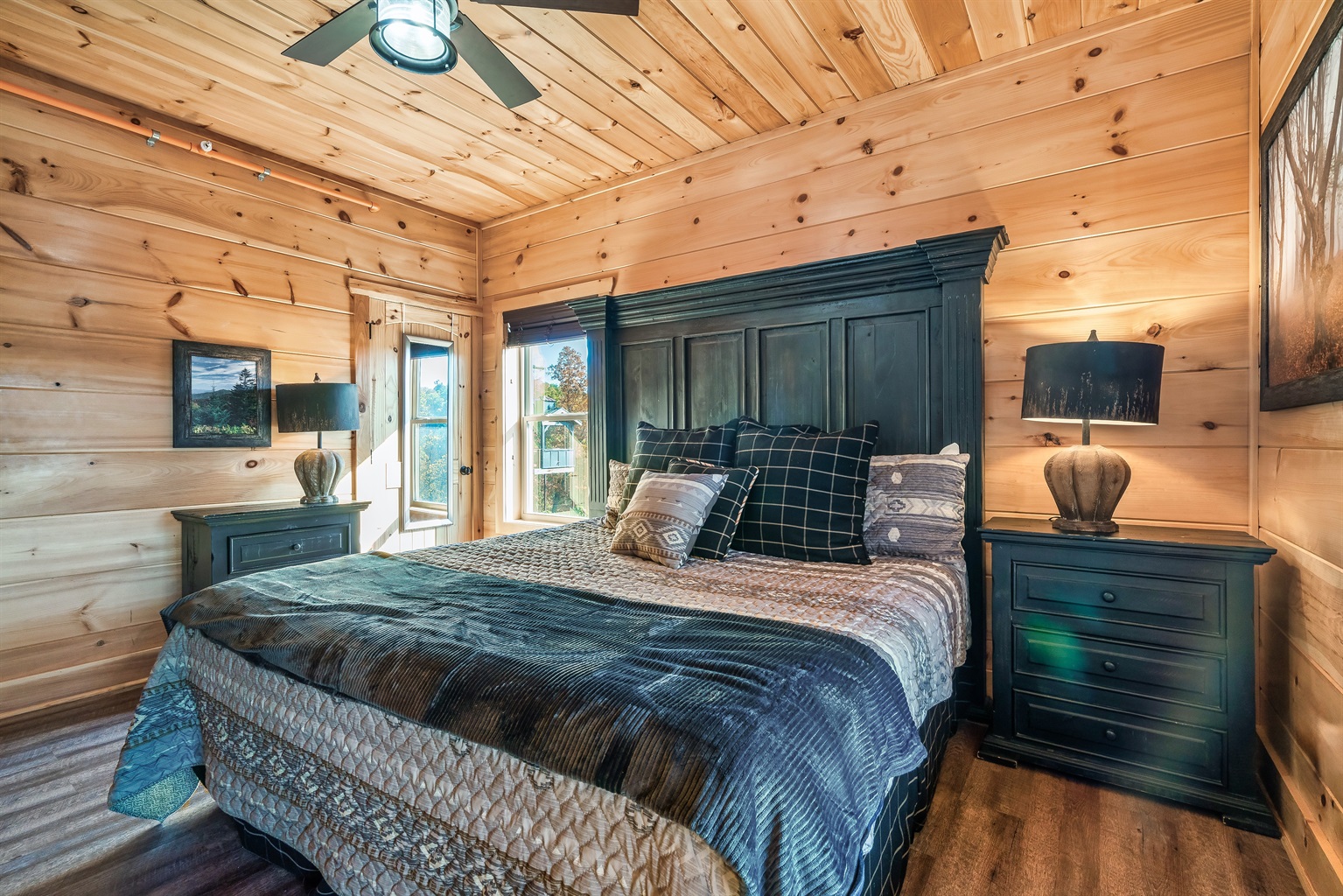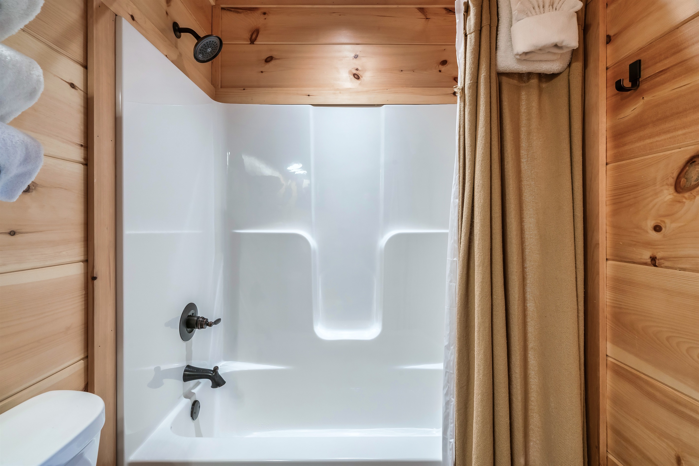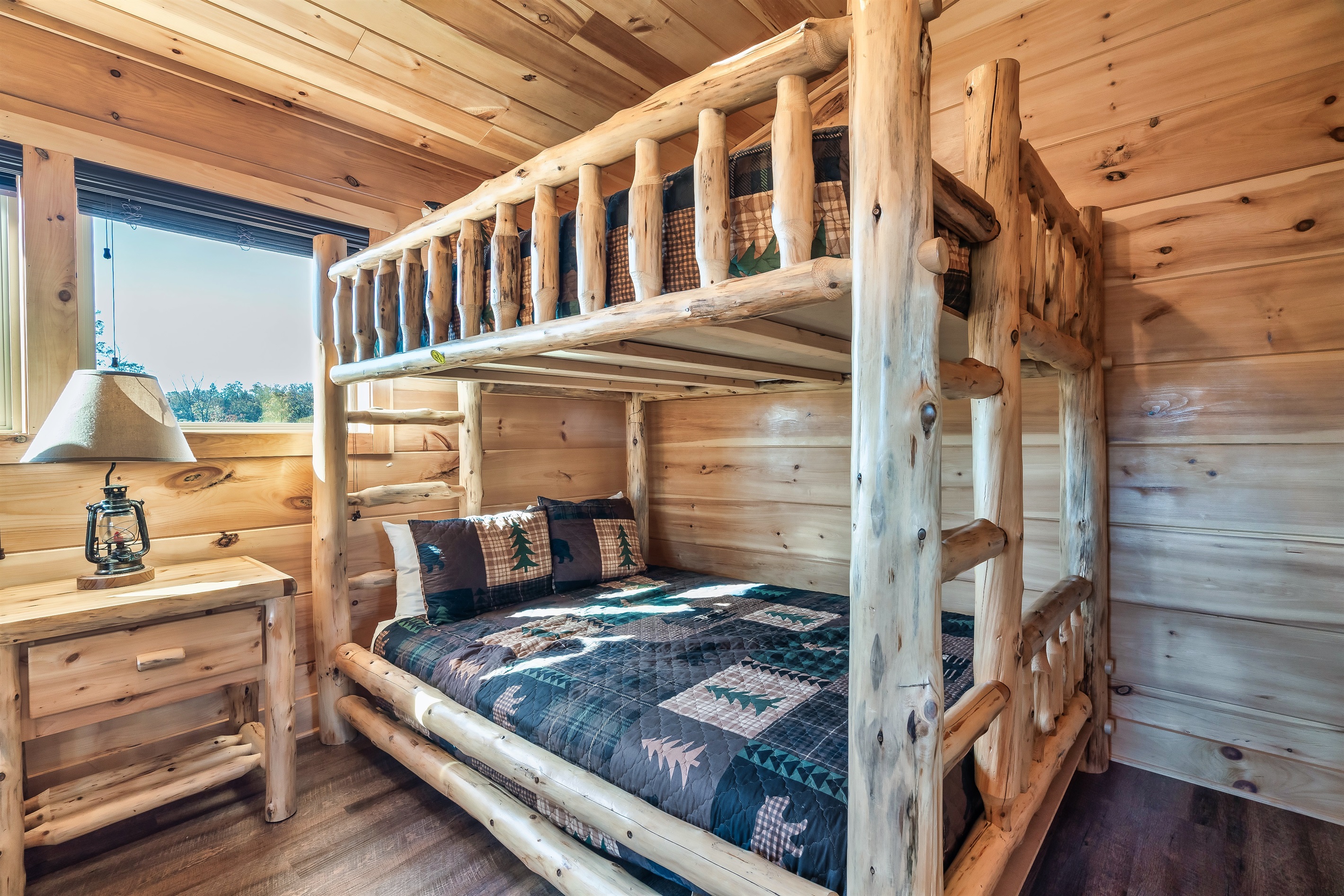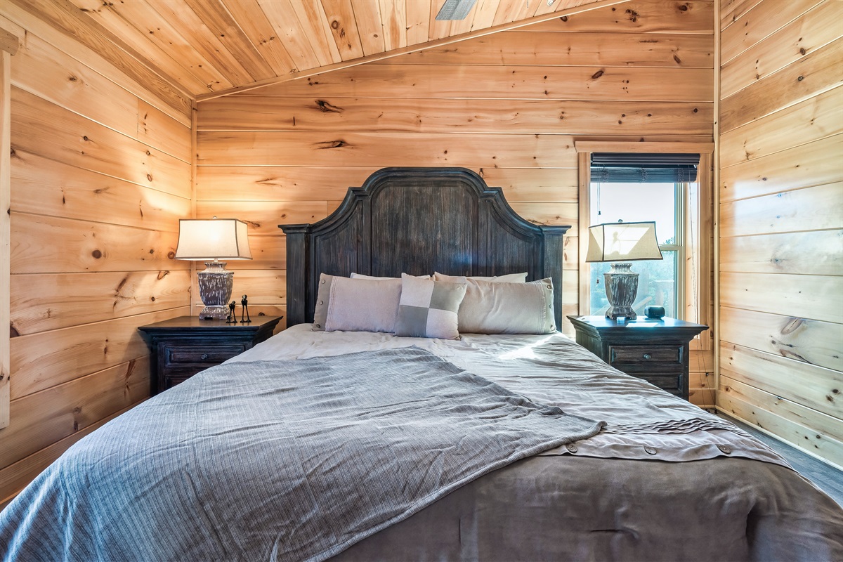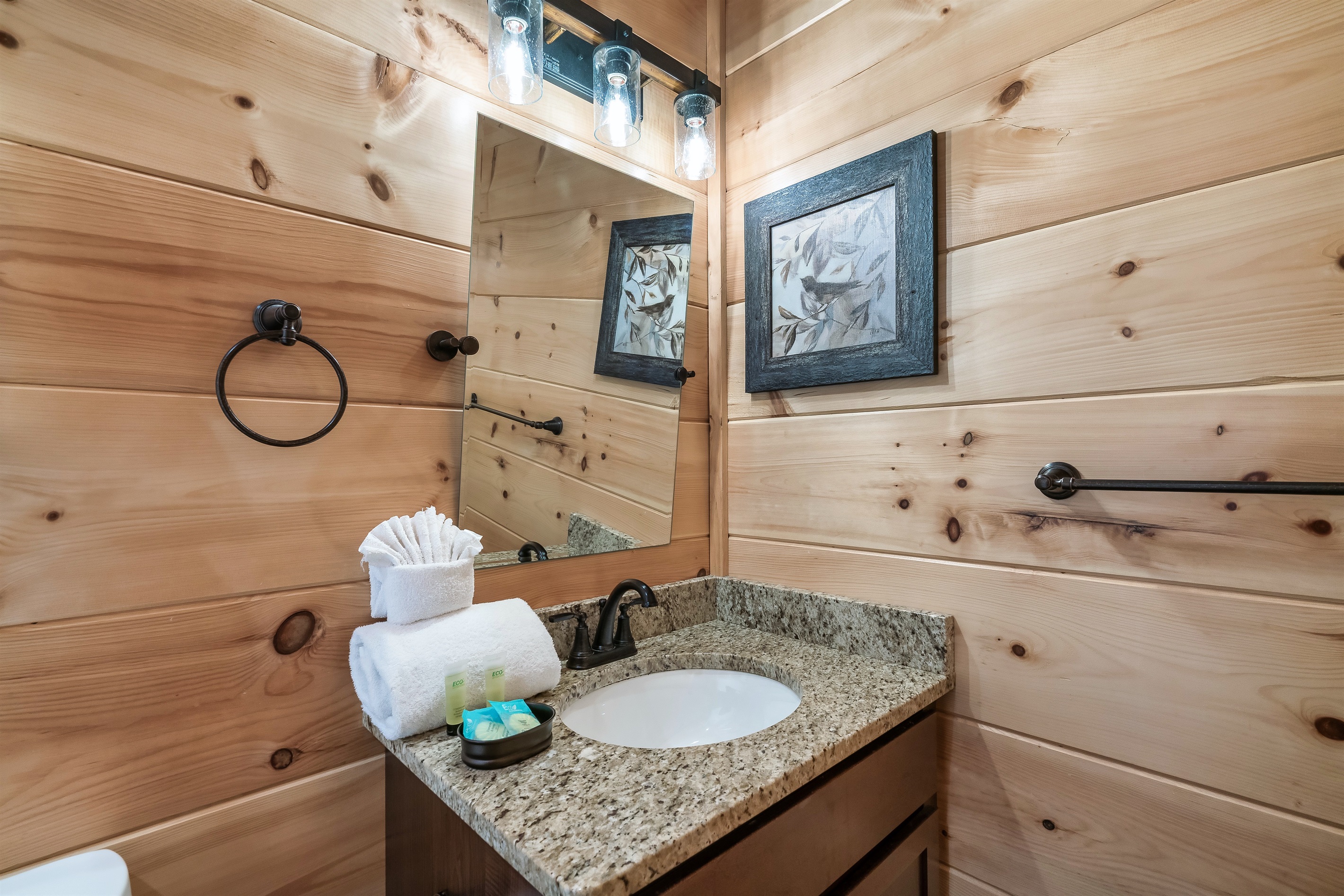 This level features a fun bunk room that sleeps eight, complete with its own private bath — a perfect retreat for kids or a larger group of friends. Two additional king en-suite bedrooms share access to a balcony, where you can enjoy your morning coffee while soaking in the peaceful Smoky Mountain sunrise.