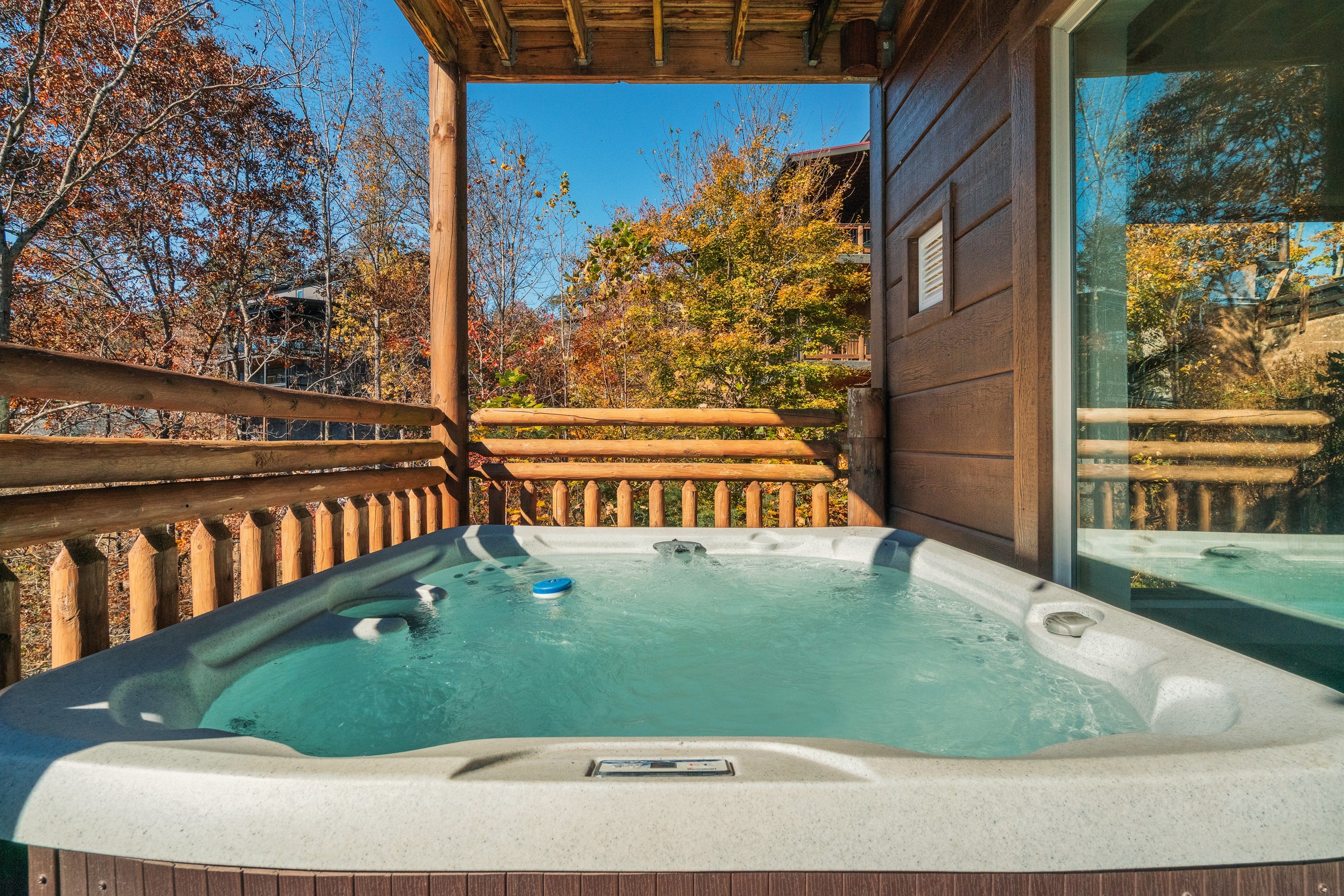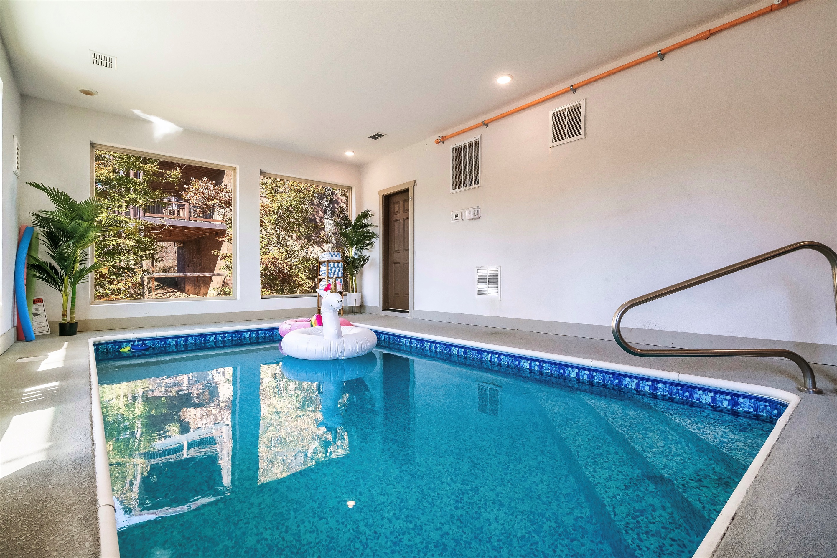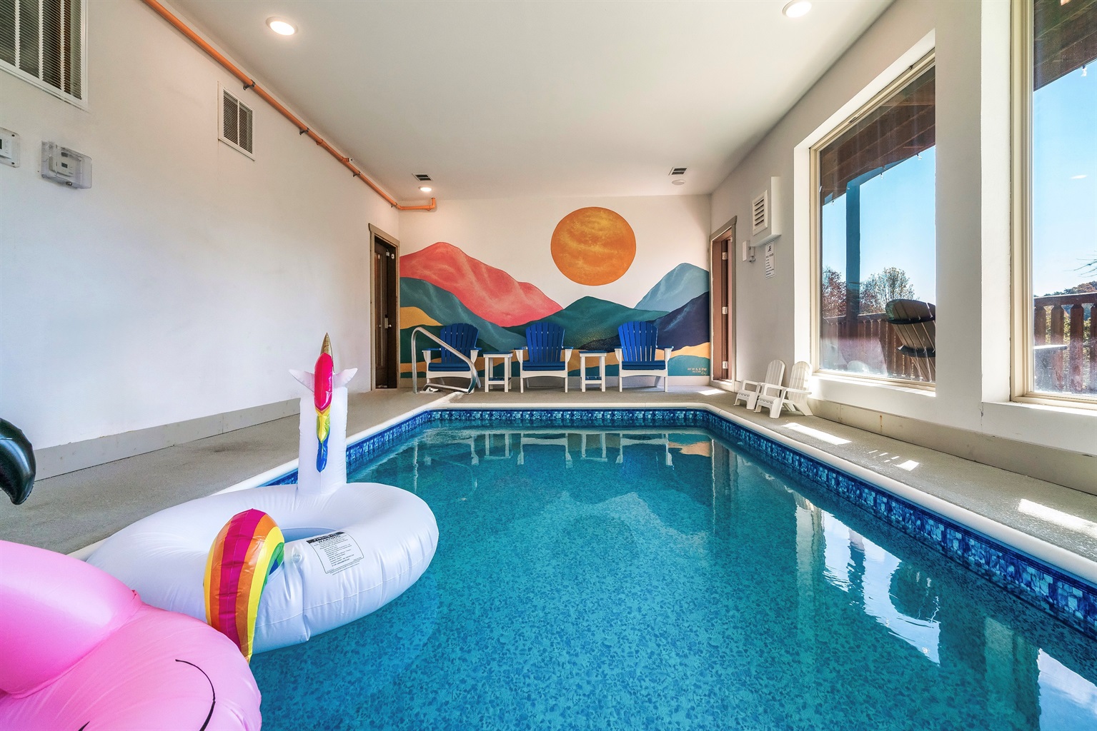 Also on this level, you’ll find another king bedroom and full bath, along with the showstopper — a private indoor heated pool! Measuring 10x20 feet and 4 feet deep, the pool room includes coded entry for child safety. Step outside from the pool area to unwind in the outdoor hot tub or around the firepit while taking in more of those unforgettable Smoky Mountain views.
